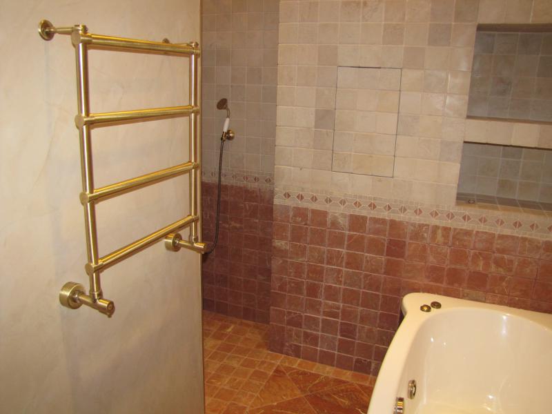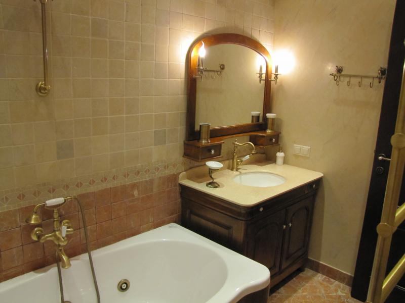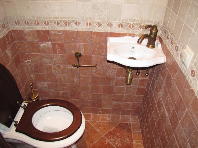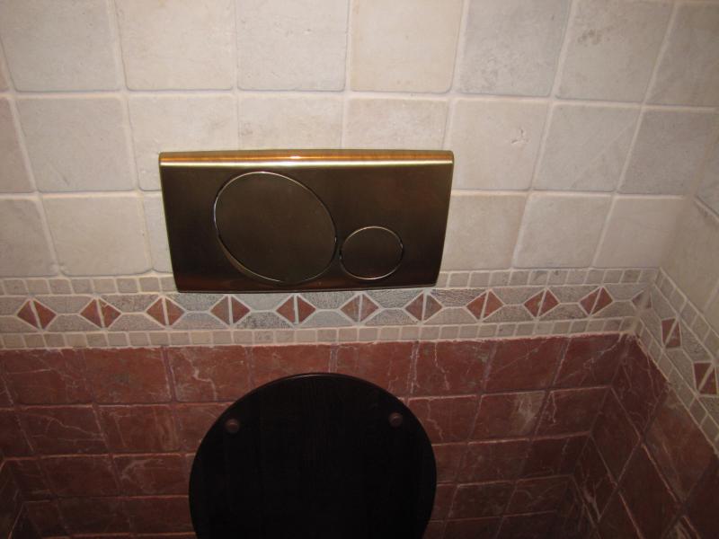 Санузел получился элегантным и гармоничным благодаря абсолютно сочетаемым друг с другом санитарно-техническим устройствам из одной коллекции. При этом необходимого для данного помещения контраста легко удалось добиться с помощью кафеля разных оттенков. Зеркало над мойкой оснащено дополнительными светильниками, которые удобно использовать во время проведения ежедневных гигиенических процедур.