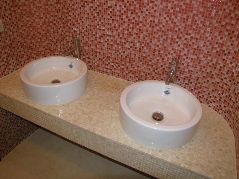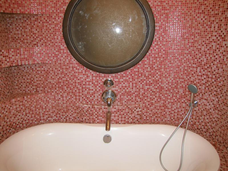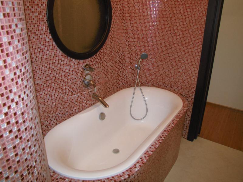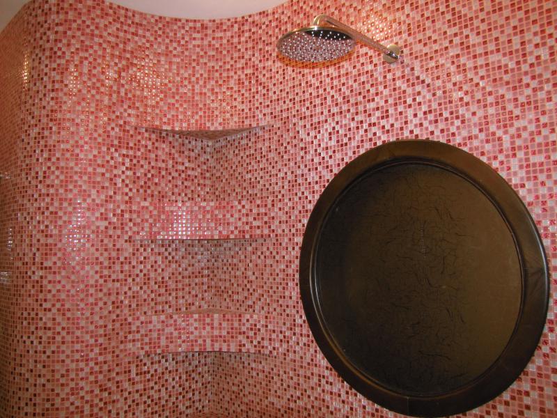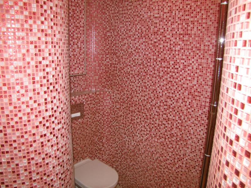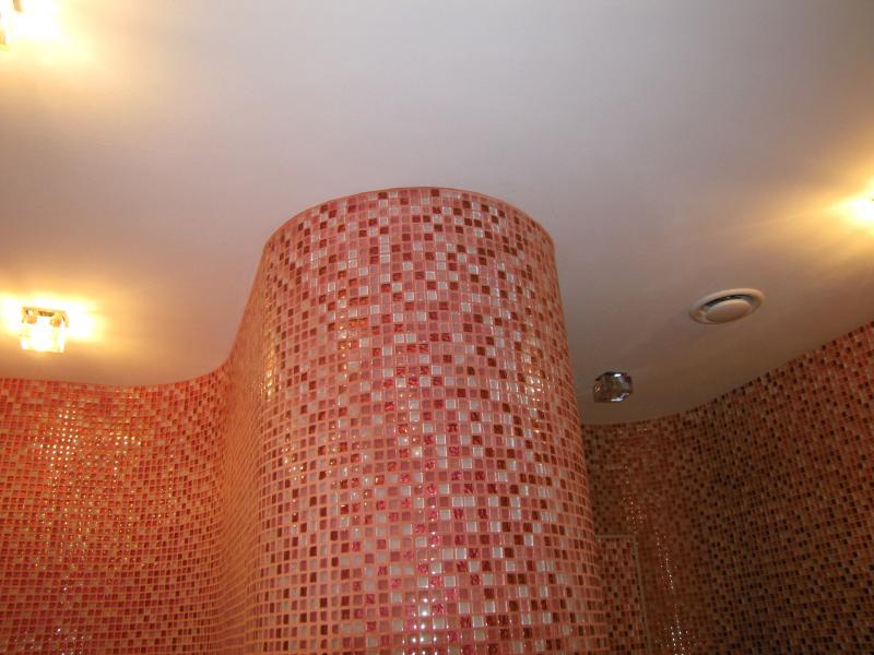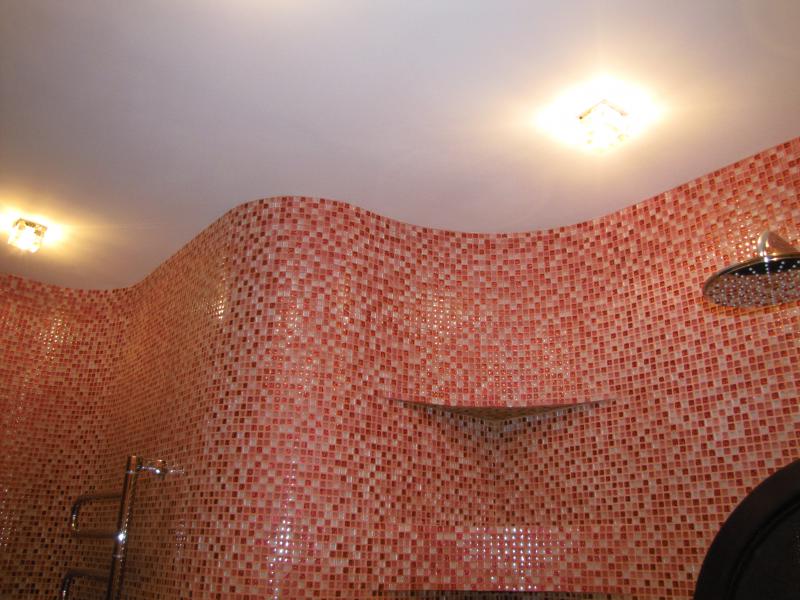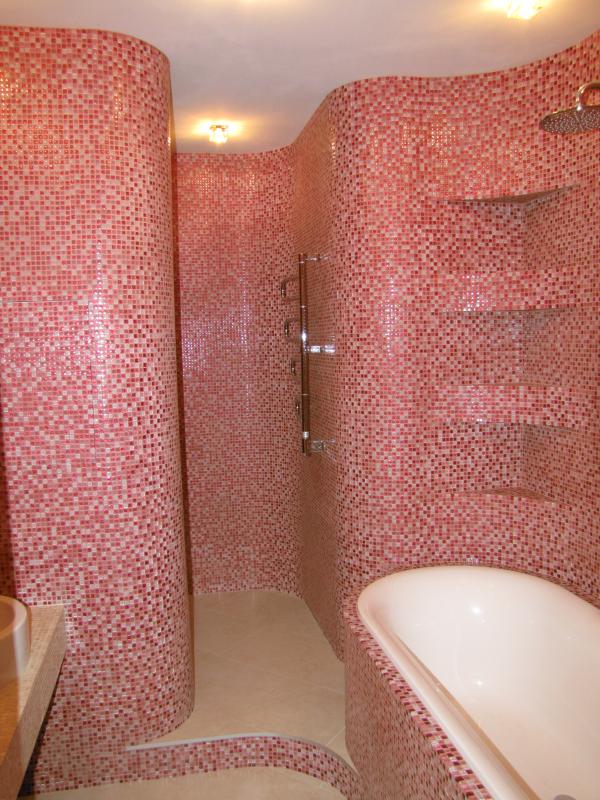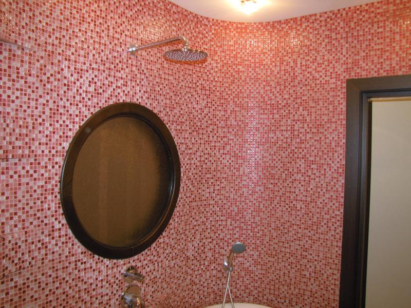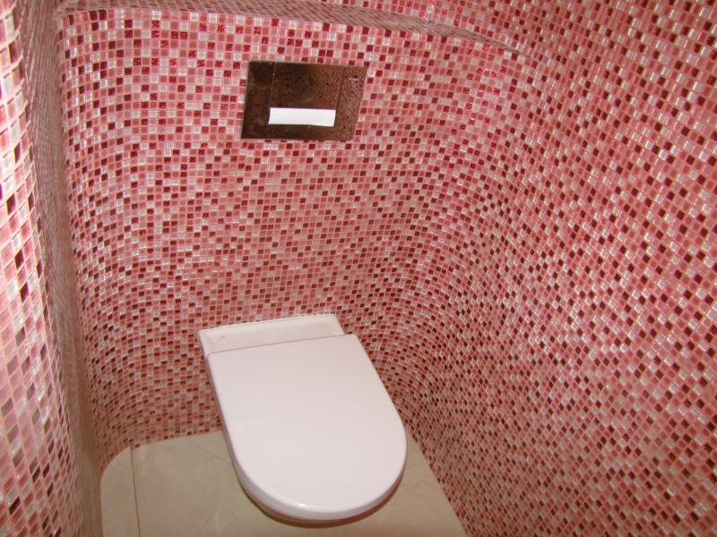 Особенно элегантно смотрится ванная комната, стены которой оформлены мелкой мозаикой. При этом в процессе ремонта возможна перепланировка санузла, которая позволит рационально распределить по помещению необходимые санитарно-технические приспособления.