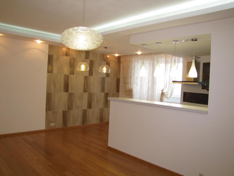 В данном разделе наши потенциальные заказчики могут ознакомиться с примерами качественного ремонта квартиры в жилом комплексе «Елена». Фотогалерея позволяет максимально полно представить, как может выглядеть ваше жилище после работ, проведенных нашими профессионалами. Здесь вы увидите оформленные в приятных светлых тонах комнаты, идеально освещенные при помощи точечных светильников. Многоуровневые подвесные потолки выглядят стильно и современно, давая возможность гармонично сочетать разнообразие осветительные приборы для зонирования помещения.